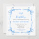 Este convite de aniversário giro e caprichoso apresenta um quadro de fita azul giro. O texto combina o script manuscrito e as fontes sans serif para uma aparência na moda e moderna.