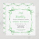 Este convite de aniversário giro e caprichoso apresenta uma bela faixa verde. O texto combina o script manuscrito e as fontes sans serif para uma aparência na moda e moderna.