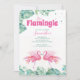 Escapando para os trópicos para um divertido fim de semana de aniversário? Convide suas melhores amigas com esses convites glamorosos e femininos em rosa, azul-turquesa e exuberante verde. Este design moderno apresenta minha arte original de flamingo rosa e folhas verdes em aquarela. Personalize as cores dos pontos polka. Personalize o modelo com detalhes da festa - perfeito para um chá de bebê com tema tropical, festa de aniversário de verão, despedida de solteira, fim de semana de garotas, chás de noiva e muito mais! Para ver o conjunto correspondente, visite www.zazzle.com/vginvites