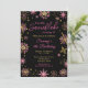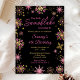 Este convite elegante e glamouroso apresenta a aquarela dourada e falso rosa falso, falso falso, flocos de neve e brilhos em um fundo preto. É perfeito para uma festa de aniversário temática de inverno ou Natal.
