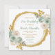 Belo convite de aniversário com uma imagem brilhante verde-sábio e dourada com arranjos florais. Perfeito para uma festa de aniversário. As palavras podem ser alteradas para se adequarem aos seus próprios detalhes ou requisitos