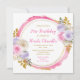 Belo convite de aniversário com uma fenda brilhante rosa, púrpura e dourada com arranjos florais. Perfeito para uma festa de aniversário. As palavras podem ser alteradas para se adequarem aos seus próprios detalhes ou requisitos