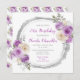 Belo convite de aniversário com uma falso cintilação roxa e prateada com arranjos florais. Perfeito para uma festa de aniversário. As palavras podem ser alteradas para se adequarem aos seus próprios detalhes ou requisitos