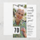 Celebre em estilo com esses convites de aniversário modernos de 70 com um fundo branco chico, uma foto do aniversariante, o ditado engraçado "demorou setenta anos para parecer tão bom!", e um simples modelo de texto que é fácil de personalizar.