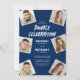 Traga um charme sofisticado para as celebrações gêmeas com nossos convites modernos de festa de aniversário dupla. Projetados com um fundo azul estiloso personalizável e uma colagem de 6 fotos, eles rompem com os estilos convencionais. Nosso modelo de celebração conjunta permite que você adicione facilmente aquele toque pessoal ao seu evento. Duas festas, um convite único.