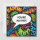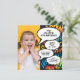 Personalize com o nome e a foto da menina ou do menino aniversariante e todos os detalhes da festa. Um convite de aniversário inspirado em livro de histórias em quadrinhos retrô divertido, legal e moderno que coloca o wham, zap, pow em qualquer evento de celebração de aniversário de super-herói. Criado por Thisisnotme©