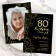 Convites Festa de aniversário de Foto Floral Dourada Preta