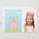 Um convite de festas real na moda para a sua pequena princesa! Inclui um castelo cor-de-rosa e um bolo em camadas com a parte superior da coroa e espaço para a foto do seu filho. As cores incluem rosa, roxo, amarelo, azul e verde.