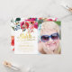 Convites de festas de aniversários surpreendentes com um passado branco clássico, uma foto do aniversariante, um bonito display floral de aquarela, um título tipográfico de folha de ouro na moda faux e um modelo de celebração de aniversário moderno.