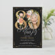 Convite de aniversário de Foto Dourada Boho Floral Black. Convite de aniversário brilhante e bonito com design floral vintage com letras douradas e fundo preto! É incrível com um tema floral e glamouroso. Quer mais personalização? Entre em contato com o designer clicando no botão 'message' abaixo.