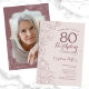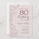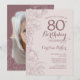 Convite de aniversário de Fotografia Rosa-Blush Floral e 80 Mauve. Design minimalista moderno com desenhos botânicos em destaque e letra de script de tipografia. Simples trendy convida cartão perfeito para uma festa de na moda. Pode ser personalizado para qualquer idade. Impressos convites Zazzle ou modelo de impressão digital instantânea para download.