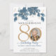 Convite de aniversário de Foto Personalizada Dourada Floral Azul. Apresentando nosso belo convite de aniversário de uma etapa floral, uma fusão perfeita da simplicidade moderna e beleza delicada. Este cartão de convite personalizado apresenta uma combinação cativante de azul e ouro, criando um cenário encantador que define o palco para uma celebração memorável de aniversário. Com seu toque de elegância feminina, esse convite exude um senso de graça e sofisticação. Adicionando um toque pessoal, você pode personalizar o convite com uma foto acalentada, capturando a essência da jornada do celebrante para esse marco significativo. Seja um encontro íntimo ou um grande caso, nosso Convite de Aniversário do Milestone Floral é o epítome do estilo bonito e refinado, garantindo que todos os hóspedes se sintam bem-vindos e entusiasmados em participar das festividades. Precisa de ajuda com este modelo? Entre em contato com o designer clicando no botão 'Mensagem' abaixo.