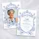 Convite de aniversário de Foto Personalizada Floral Azul Celebre seu marco com este convite floral azul com uma crista vintage e um elegante design de Chinoiserie. Detalhes delicados e padrões de eterno criam um aspecto sofisticado, perfeito para marcar momentos especiais da vida. Personalizável e gracioso, este convite combina o encanto clássico com uma artista refinada, definindo o tom para uma celebração inesquecível que é na moda e memorável.