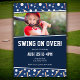 Este convite de aniversário divertido de baseball e padrão de taco mostra o equipamento esportivo em um padrão em azul escuro. Adicione os detalhes do evento no topo, como a data, hora e local da festa. Para um toque personalizado, adicione uma foto do seu jovem aniversariante ou garota! Este convite adiciona um toque de excelente a um aniversário, equipe esportiva, Natal ou outra festa de feriado.