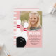 A Convite de aniversário de Foto de Rapariga Rosa mostra uma foto do garoto de aniversário, juntamente com ilustrações de boliches bonitinhas.