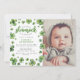 Celebre o seu aniversário com um toque de sorte irlandesa! Rua, convite de aniversário temático do Dia de Patrick, cheio de amor, risos e muita diversão inspirada em shamrock. Nosso convite é seu ingresso de sorte para um dia inesquecível. Apresentando um sortido de moléculas de aquarela, uma foto e um modelo de convite moderno que é facilmente personalizado. Então junte seus entes queridos e deixe a sorte dos irlandeses brilhar sobre seu pequeno.