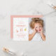 Um convite de aniversário fotográfico de crianças caprichadas que apresenta aspergaminhos do arco-íris, nome grande e idade personalizada e chapéus de festas.