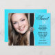 Elegante azul, preto e branco, convite de aniversário 16. Adicione os seus detalhes à frente e atrás deste bonito convite de aniversário verde azul-lacrimogêneo dezesseis simplesmente adicionando a sua fotografia e detalhes do evento, estilo da fonte, tamanho da fonte e cor e texto.