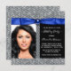 Convites de festas de aniversários de fotos reais de diamante azul com fita azul real elegante e arco em um lindo fundo de vidro de diamante com espaço para sua foto. Este convite de aniversário real de diamante azul é facilmente personalizado para o seu evento simplesmente adicionando seus detalhes e fotos.