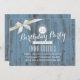 Convites de aniversário de madeira de marfim azul enferrujada e ferrado.