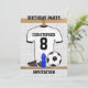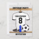 Um Convite de aniversário de excelente para o jogador de futebol ou fã de futebol com uma camisa personalizada de futebol branco e preto pendurada no vestiário esportivo. Apenas adicione o seu nome e o número do garoto de aniversário ou da garota de aniversário na frente para Convites de aniversário únicos. O verso do convite é totalmente personalizável para os detalhes de sua celebração de aniversário.