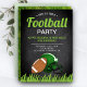 Incomode seus convidados com este legal tema de futebol, convidando com um futebol americano e um capacete esportivo com tipografia moderna contra um fundo de quadro negro. Basta adicionar os detalhes do seu evento neste modelo fácil de usar para torná-lo um convite de tipo único. Sacudir a carta para revelar uma bela textura de grama verde na parte de trás da carta.