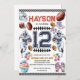 Comece a diversão com este incrível Convite de Aniversário de Futebol para Meninos! Com um design arrojado em azul-marinho e gráficos esportivos de futebol, este convite é perfeito para o grande dia do seu pequeno MVP. Seja um jogo no quintal ou uma festa temática de futebol, personalize-o com todos os detalhes da festa para deixar todos animados. Ideal para crianças que amam esportes e futuros astros!