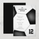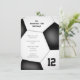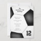 Este convite de festa de aniversário temático de futebol esportivo para meninos ou meninas apresenta a imagem de uma bola de futebol preto e branco superdimensionada e abstrata, na qual você pode personalizar todos os detalhes da festa - por katz_d_zynes