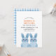 Tema de coelhinho fofo para a festa de aniversário do irmão gêmeo, apresentando dois coelhinhos bebês azuis usando óculos. VOCÊ PODE REMOVER OS ÓCULOS! Fundo com padrão xadrez.