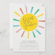 Um convite de aniversário colorido gêmeo com sol arco-íris e roteiro moderno. Clique no botão editar para personalizar este design com seus detalhes.