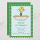 Este convite para festas de aniversário de ginástica apresenta um ginasta de figurinhas.
