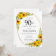 Bonito convite para o 90 de aniversário floral de girassol amarelo. Peônias amarelas e margaridas brancas se misturam com os girassóis. Um quadro de ouro lhe dá uma vibração elegante. Muito fácil de personalizar. Essa parte de trás é branca com um buquê de girassol. Isto é perfeito para uma celebração de aniversário de verão.