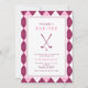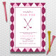 Celebre em estilo com este convite de aniversário chic e temático de golfe projetado apenas para ela! Apresentando um título lúdico do "PAR-TEE" e clubes de golfe cruzados. A fronteira clássica de argyle tem uma reviravolta feminina em tons de rosa, acrescentando um toque divertido e moderno. Com tipografia moderna e limpa para todos os detalhes do evento, este convite é perfeito para qualquer mulher que ama o golfe - de qualquer idade, este convite dá o tom perfeito para uma celebração que certamente será um buraco-em-um!