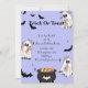 convite de aniversário de halloween com fantasmas, morcegos, abóboras, picadas ou travessuras