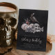 Um convite de aniversário de Dia das Bruxas chique assustador para crianças ou adultos com crânio, ossos, flores góticas e um corvo sentado sobre uma abóbora branca, sobre um fundo preto enfumaçado. Personalize este convite de aniversário exclusivo e elegante do Dia das Bruxas com os detalhes do evento abaixo.