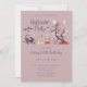 Cartão de modelo de convite de aniversário de Halloween para crianças com ilustração de criaturas na floresta. Jogue uma fabulosa festa de fantasia com este cartão!