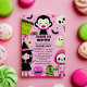 Transforme o dia especial do seu filho numa celebração manchada com este Convite de aniversário de Dia das Bruxas do Monstro Mash Pink Kids! Apresentando adoráveis monstros amigáveis, pop de rosa, e um design de Halloween caprichoso, este convite é perfeito para aqueles pequenos que amam a diversão sobre o medo. Uma maneira encantadora de convidar amigos e família para uma mistura mágica de alegria de aniversário e entusiasmo de Halloween — certamente para dar o tom a um cheio de festas de guloseimas e memórias monstruosas. 👻 🎃 💖