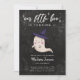 Cartão de modelo de tema bonito para crianças com convite de aniversário ilustrado com um fantasma com um chapéu de bruxa sobre fundo preto. O texto acima diz: "O bobinho está mudando [a sua idade]." Perfeito para o aniversário de uma garota no outono.