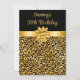 Este elegante e glamouroso convite de aniversário apresenta um arco de ouro e fita com manchas de impressão de ouro e leopardo preto. O texto combina o script manuscrito e as fontes sans serif modernas para um aspecto elegante e sofisticado.
