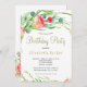 Modelo de convite para na moda de festa de aniversário floral clássico sobre um fundo branco claro (alterável) com rosas de peônias cor-de-rosa-pincel e vermelho-coral com folhas e folhas verdes e azuis-salgado e azul-lacrimogêneo e com letra de escrita de ouro. Preencha suas informações nos pontos, Você pode optar por personalizá-las mudando ainda mais as fontes e as cores das letras. +++++++++++++++ O convite é adequado para primavera floral de cor aquática moderna ou outono cair ao ar livre ou bolsas mensageifestas de aniversario elegante rústicas de quintal ou aniversários familiares. — Se precisar de assistência, por favor, entre em contato comigo!