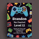 Alcance a diversão com este convite de aniversário de jogos legal para crianças! Com um controlador de videogame a cores aquáticas e uma ousada inscrição moderna, este design é perfeito para os jogadores que adoram jogar e celebrar. Personalize-o facilmente com o nome, a idade, a data da festa e os detalhes do seu filho para criar um convite que esteja pronto para alimentar o entusiasmo. Excelente para rapazes ou raparigas que desfrutam de jogos de consola, diversão online ou festas ao estilo do 'arcade'!