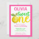 Um doce limonada cor-de-rosa primeiro convite para festa de aniversario de meninas de modelo de descarregamento digital instantâneo, limão amarelo giro cor-de-rosa primeira viagem de aniversário convite editável modelo de descarregamento instantâneo