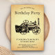 Convide seus hóspedes com este convite de aniversário vintage com uma bela e velha locomotiva a vapor e tipografia elegante contra um pergaminho vintage. Basta adicionar os detalhes do seu evento neste modelo fácil de usar para torná-lo um convite de tipo único.