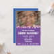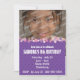 Este convite de aniversário personalizável apresenta bolinhas cor-de-rosa e roxo, texto personalizável, um modelo de foto para sua foto.