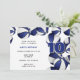 Este convite de festas desportivo bonito para um jovem jogador de basquete apresenta basquete azul e branco em cluster nas bordas direita e superior na frente e um cluster de solteiros que cobre o verso do convite - personalize os detalhes da festa em coordenação de cores em fundo branco - por katz_d_zynes