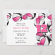Este convite de festas de tema de basquete giro apresenta bolas de basquete rosa, preto e branco agrupadas, à direita e ao topo, na frente e no cluster de solteiros, cobrindo a parte de trás do convite - personalize os detalhes da festa em coordenação de cores em um fundo branco - por katz_d_zynes