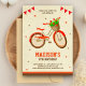 Convide seus hóspedes com este legal convite de aniversário com uma bicicleta fofa com tipografia vibrante contra um fundo de pergaminho. Basta adicionar os detalhes do seu evento neste modelo fácil de usar para torná-lo um convite de tipo único.