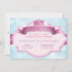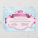 Convites: Convites de festas de aniversários princesas elegantes, clássicas e muito femininas, estilo contador de fadas, desenhadas a rosa, com um quadro de fronteira ilustrado cor-de-rosa, uma faixa cor-de-rosa-rico com "Celebração de Aniversário" na escrita, e uma coroa princesa enjugada no topo. Todos estes elementos estão sobre um fundo azul do Bokeh. Seus detalhes de celebração são personalizados instantaneamente online, por você, e impressos personalizados para seu pedido. Um convite excelente para crianças, ou para adultos jovens de coração. São aplicáveis descontos em massa. NOTA: Estes convites pareceriam fabulosos no material de papel de gelo metálico.