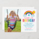 Este convite de aniversário de uma garota super fofa apresenta um design brilhante colorido com nuvens fofinhas e sol de verão, assim como espaço para carregar uma foto do seu filho. Fundo branco com cores cinza-arco-íris: vermelho, laranja, amarelo, rosa-quente, verde, azul real e roxo violeta.
