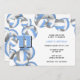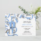 Este convite de festas temático de vôlei apresenta azul-claro em cluster, cinzas e volichões brancos nas bordas direita e superior na frente e um cluster de solteiros que cobre o verso do convite - personalize os detalhes do partido em coordenação de cores em fundo branco - por katz_d_zynes